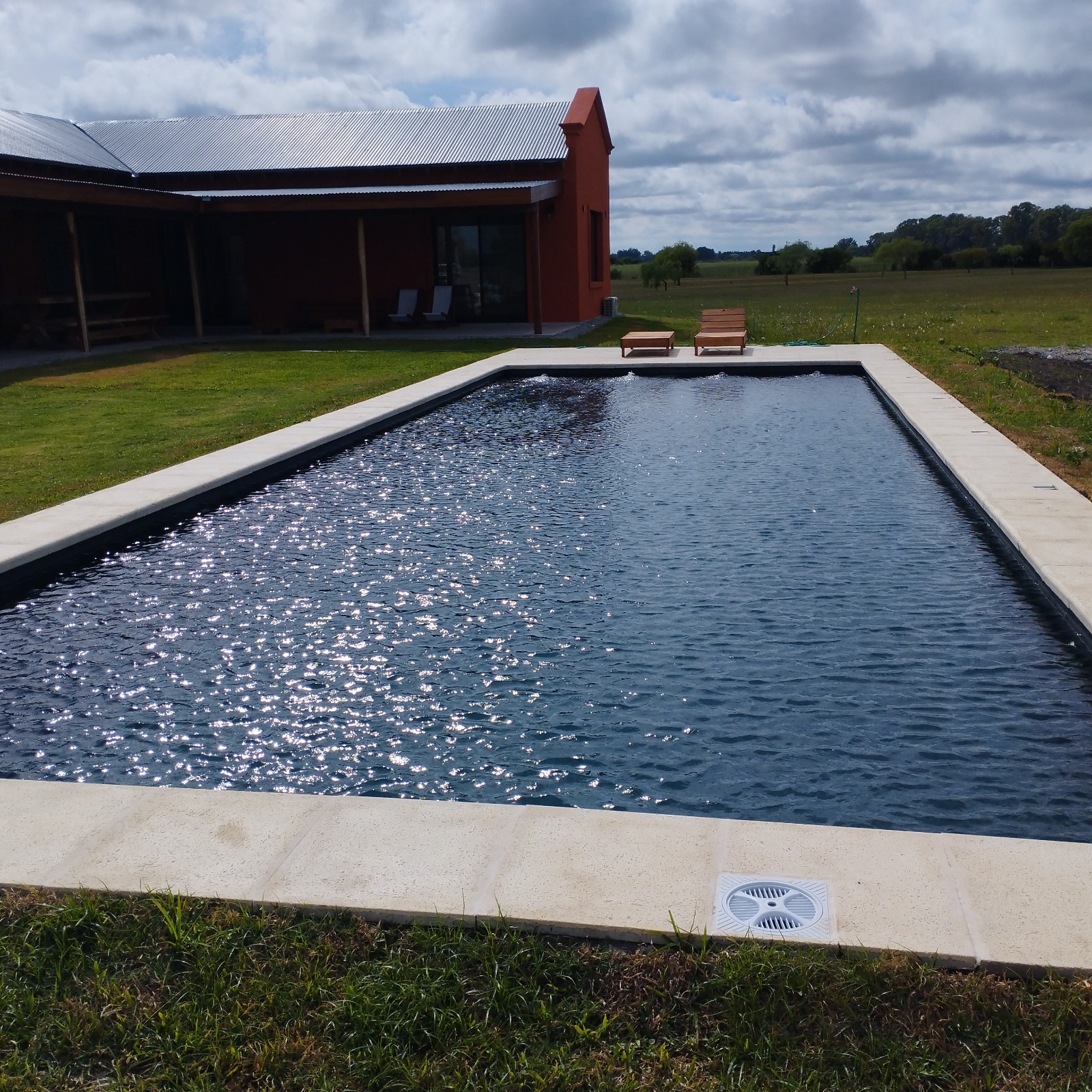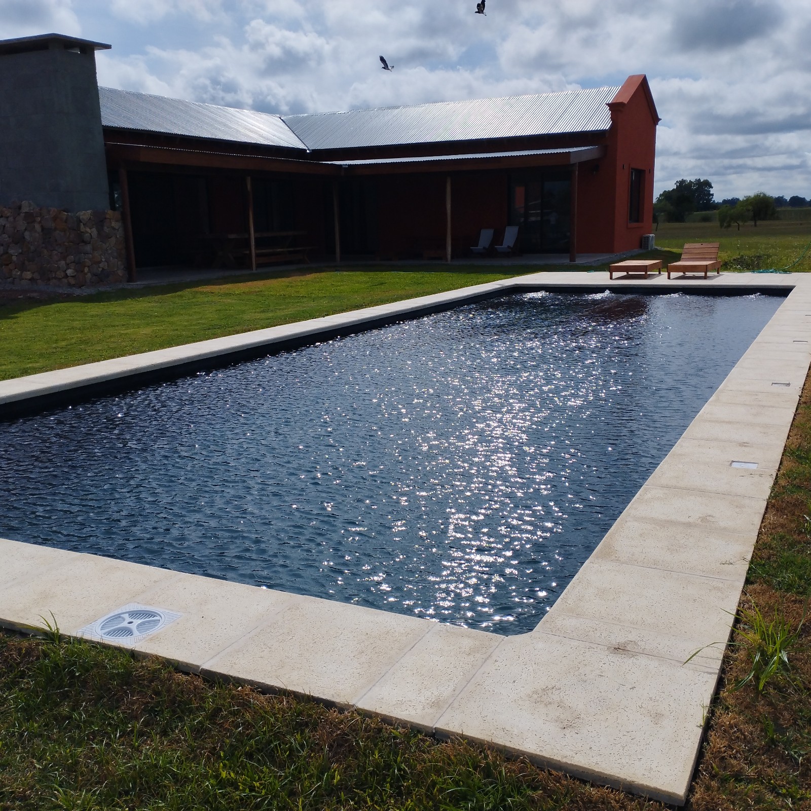 La piscina fue diseñada de forma alargada para disfrutar el momento de nadar.
