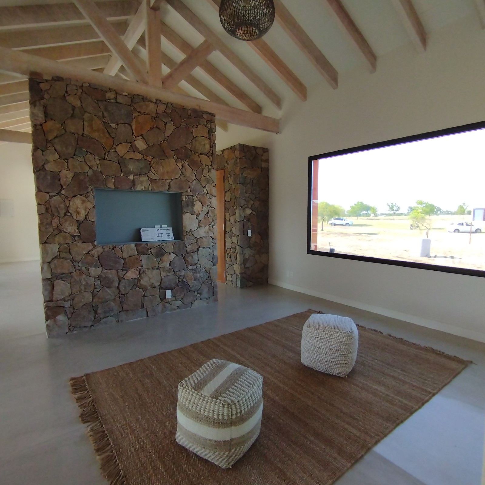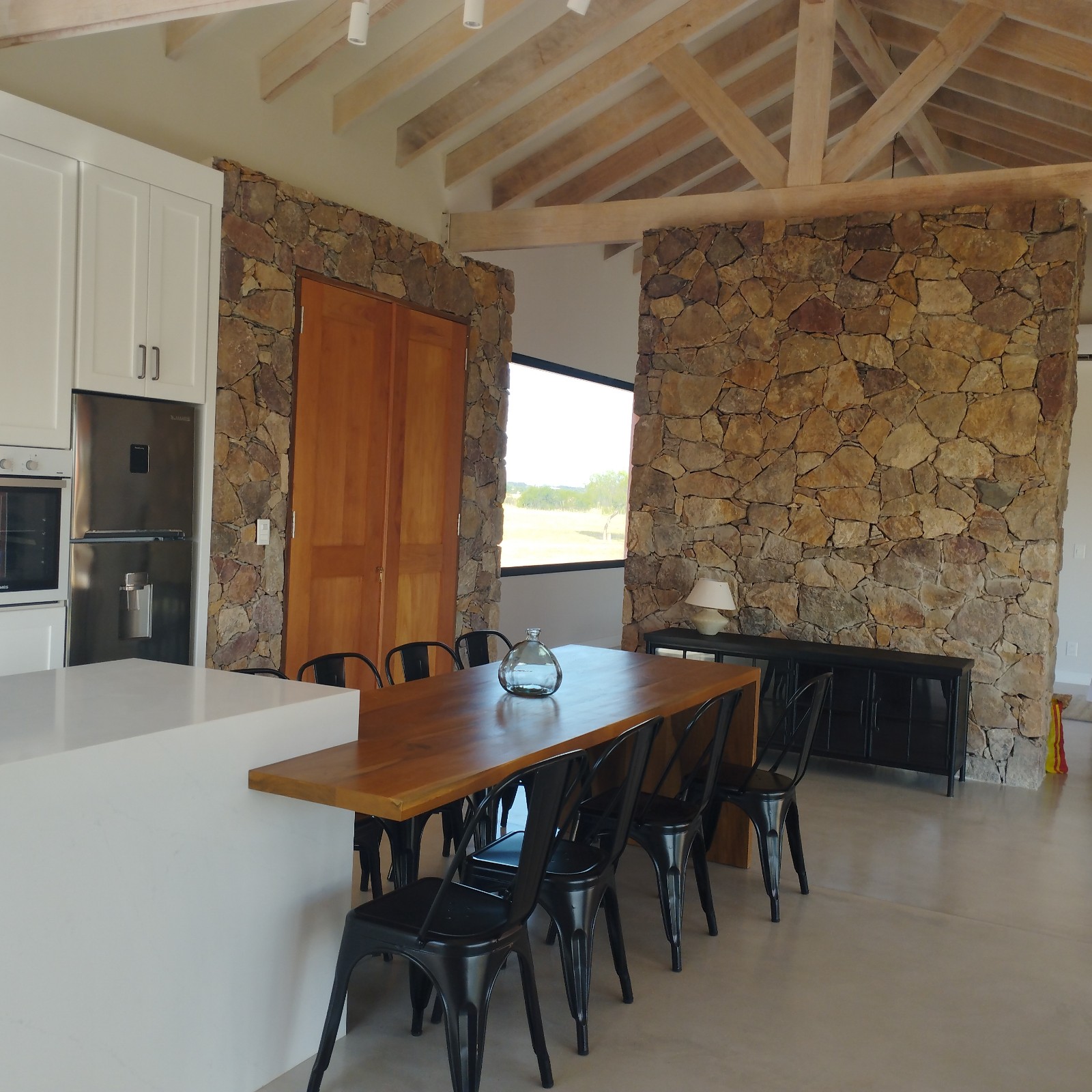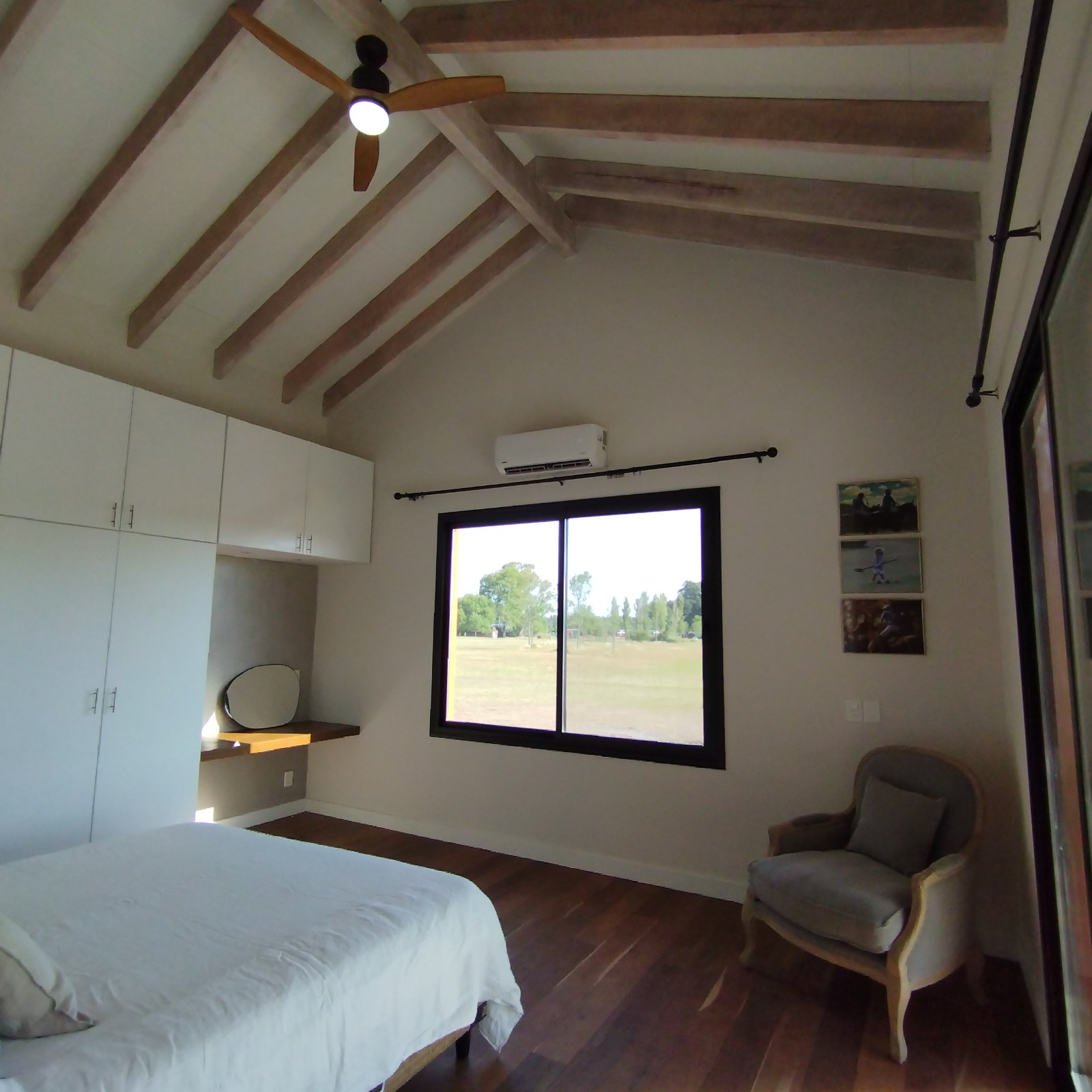 La casa con sus dos alas perpendiculares entre si, se encuentra ubicada en el terreno de forma de poder apreciar al máximo las vistas del paisaje natural, la piscina y la cancha de Polo .