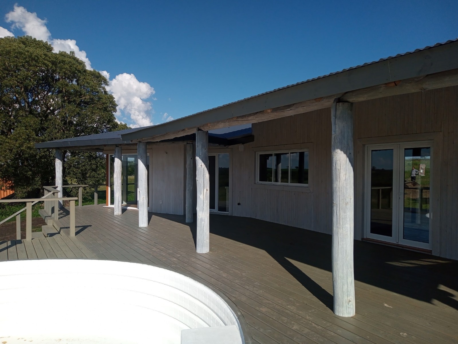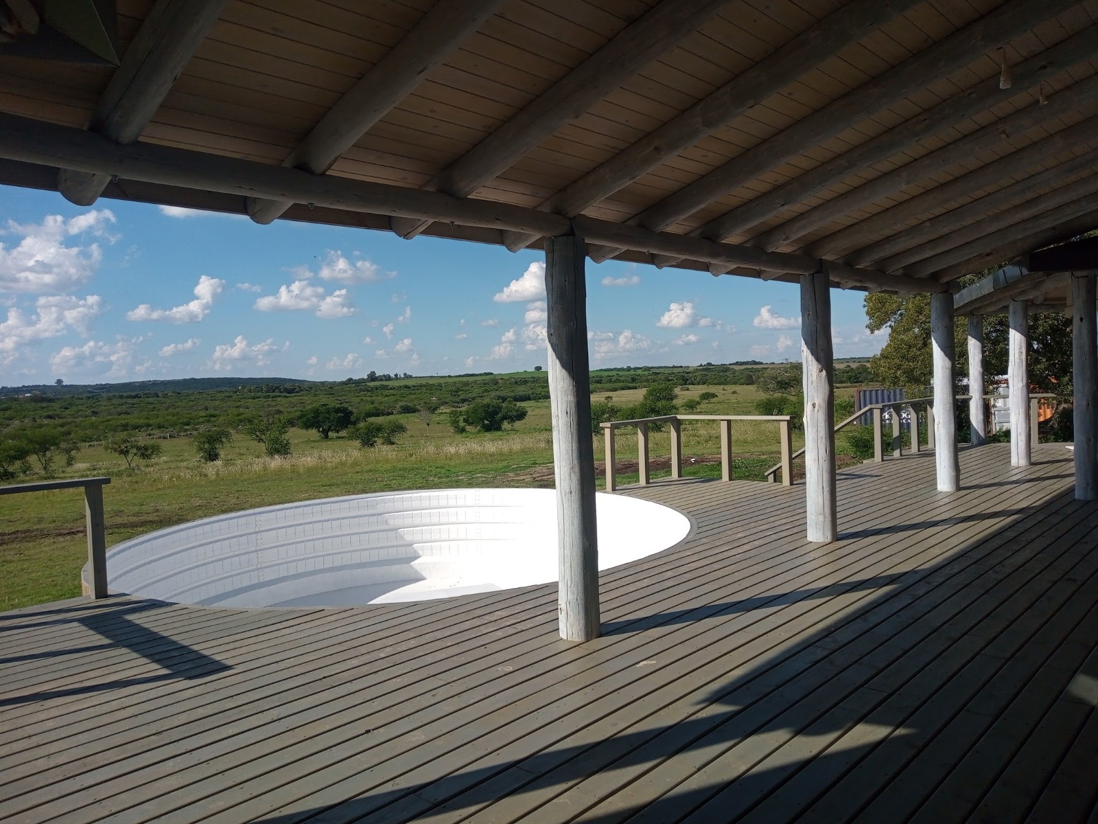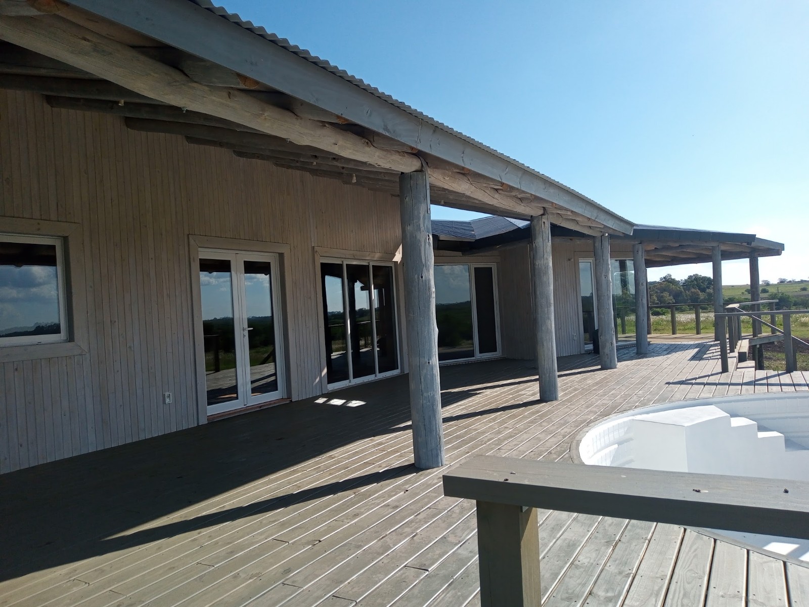 La galerÃa rodea toda la construcción, ampliándose en el sector posterior dando lugar a la ubicación de una piscina acorde al estilo de la casa.